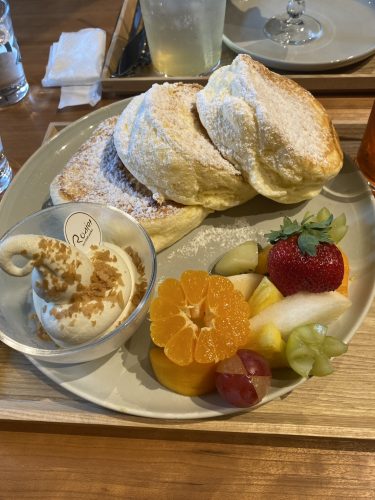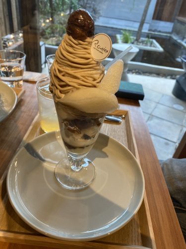 和栗と梨のモンブランパフェとフルーツパンケーキを頂きました。