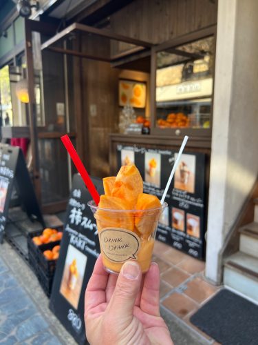 写真の柿のスムージーも奈良産の柿がたっぷり乗って食べ応えあり!