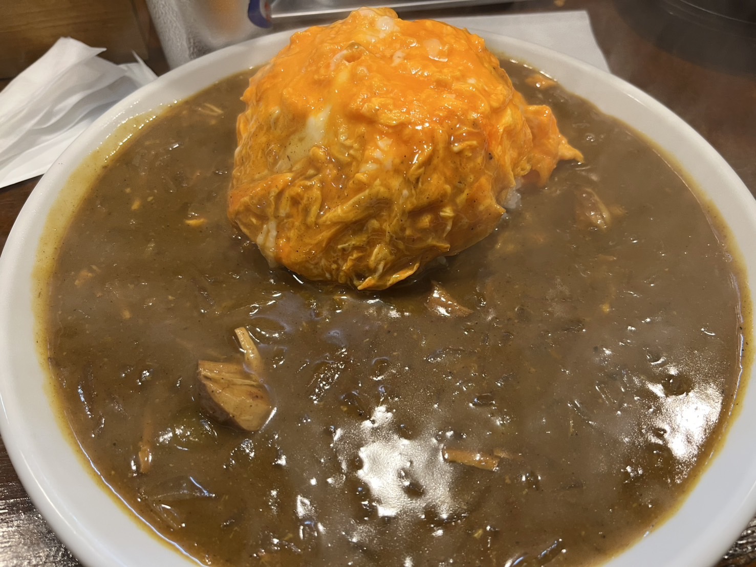 カレーはタマネギの甘さをたっぷり感じ取れるルーになって甘いかと思いきや、後からくるスパイスがとても効いてきて汗をかいてました💦